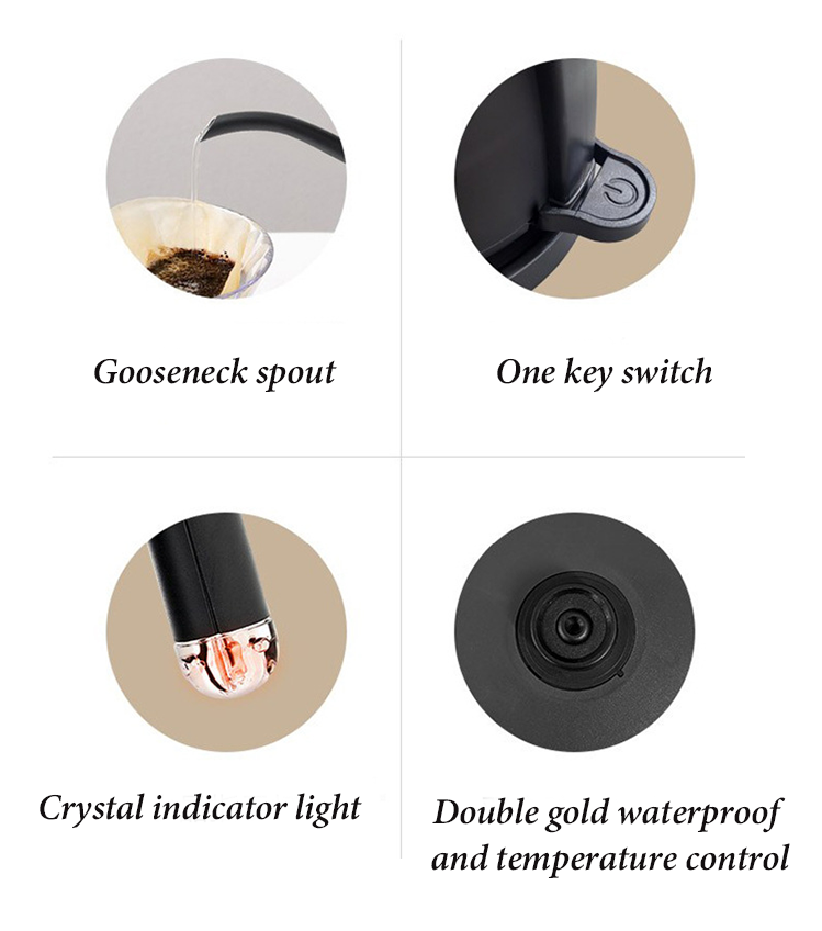 نقدم لكم غلاية القهوة الكهربائية ذات الرقبة المنحنية المصنوعة من الفولاذ المقاوم للصدأ، وهي إضافة أنيقة ومتطورة لأي مطبخ لمحبي القهوة. هذه الغلاية مصنوعة من الفولاذ المقاوم للصدأ عالي الجودة، ولا تتميز بمظهر عصري ورائع فحسب، بل توفر أيضًا أداءً متميزًا.